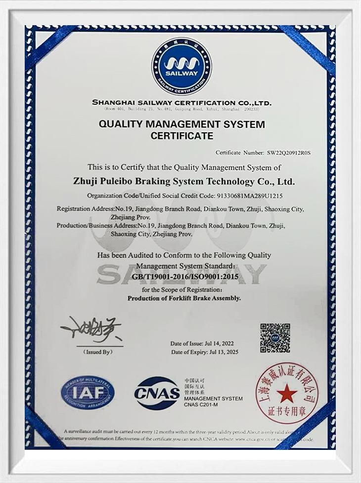 Technologie Cie., Ltd de système de freinage de Zhuji Prebo. est un grossiste professionnel de pièces de chariot élévateur. Nous développons et produisons indépendamment une large gamme de freins, mâchoires de frein, arbres flexibles, flexibles, flexibles haute pression, tuyaux en cuivre, tiges de piston, ressorts, vis et faisceaux de câbles.